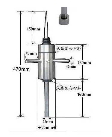 OML-ESE/F3イオン避雷針(前放電避雷針)は、従来の避雷針放電の原理に基づいており、 “イオン化の促進 ”の導入、予防避雷針の基本的な特性は、通常の避雷針パイロット放電よりも早く達成するように、保護半径を拡大し、安全率を向上させます。雷の条件では、地面に近い雷下向きパイロット、任意の導電性の表面は、上向きのパイロットを生成します。パッシブ避雷針の場合、上向きパイロットは、電荷の再結合の長い期間の後にのみ伝播される。イオン化した避雷針の上向きパイロットの励起時間はかなり短くなります。雷放電前の静電場特性が高い場合、OML-ESE/F3 イオン早期放電受信機は針の先端に制御可能な振幅と周波数のパルスを発生させ、避雷針に上向きパイロットを発生させ、上向きに伝搬させることで、雷雲から放出される下向きパイロットを遮断し、初放電の目的を達成します。特別に設計されたイオン化プロセスにより、他の近隣のハイポイントよりも早く上向きパイロットを発生させることができ、最初の放電を達成することができます。事前放電時間△Tとして知られている事前値のトリガー時間。これは、主な指標の事前放電型避雷針(ESE型避雷針)性能の評価である。