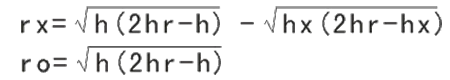 rx=√h(2hR−h)−√hx(2hR−hx)