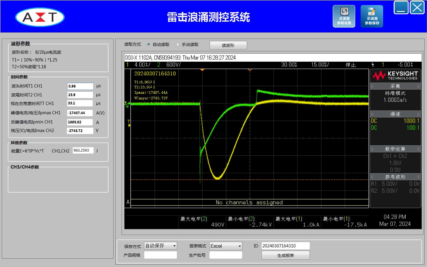 模拟雷电冲击测试