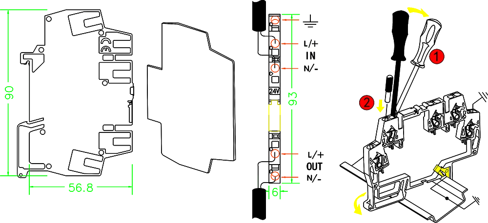 - 可直接利用导轨接地。