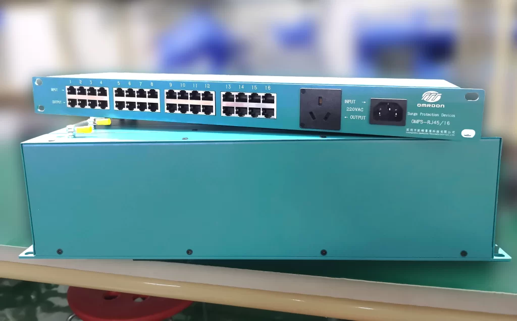 欧姆雷盾(OMRDON)16口/24口 机架式网络电涌保护器(SPD)是一款专为千兆以太网(100/1000Mbps)设计的高性能防雷设备,可安装在19”标准机柜上。严格遵循IEC与GB标准,适用于雷击保护区的1-2区与2-3区交界处,有效防御雷电感应、电网波动、静电放电及负载冲击对敏感网络设备的损害。