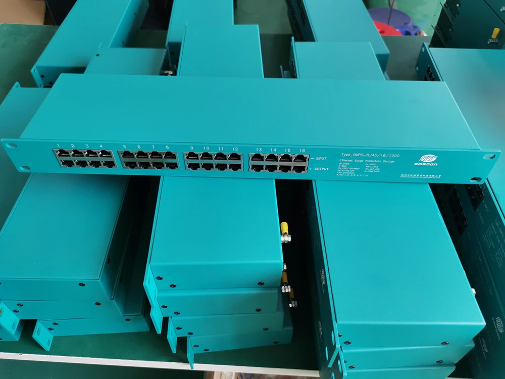 OMS-RJ45/16/1000,OMS-RJ45/24/1000,16路/24路,CAT5E/CAT6 千兆网络防雷器,用于网络交换机、路由器、工业以太网等网络通信链路的电涌保护