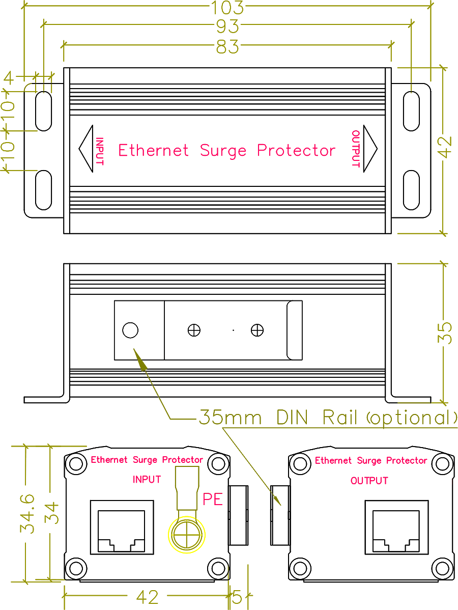 | 安装方式 | 串联,螺丝固定(可选装35mm DIN导轨) |